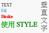 比較特別的是,這些屬性的設定,都可以視為一個單行陣列的形式呈現,例如除了寫x="10"之外,也可以寫成x="10,20,30,40",裏頭的數值分別代表了文字的每個字,如果只寫了一個值,就是設定第一個字的屬性,因為沒有其他值,因此從第二個字開始就會接續第一個字。