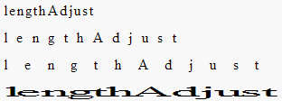 textLength設定這段文字的長度,和lengthAdjust( 設定對這段文字長度的調整 ) 搭配進行,lengthAdjust有兩種值可以設定,一種是spacing,就是拉寬文字間距,讓文字滿足textLength的寬度,另外一種是spacingAndGlyphs,也就是把文字拉寬,直到滿足textLength的寬度為止。